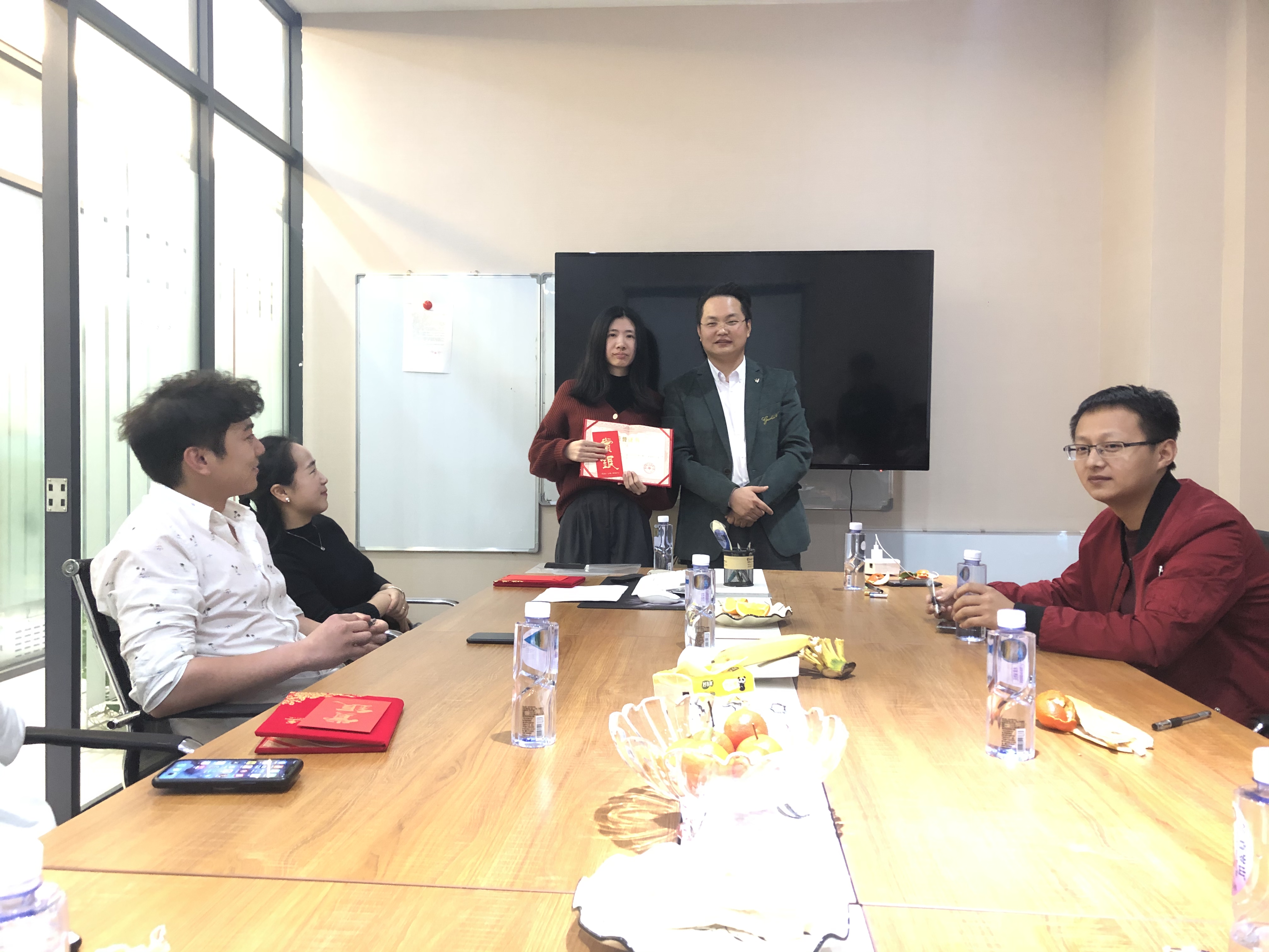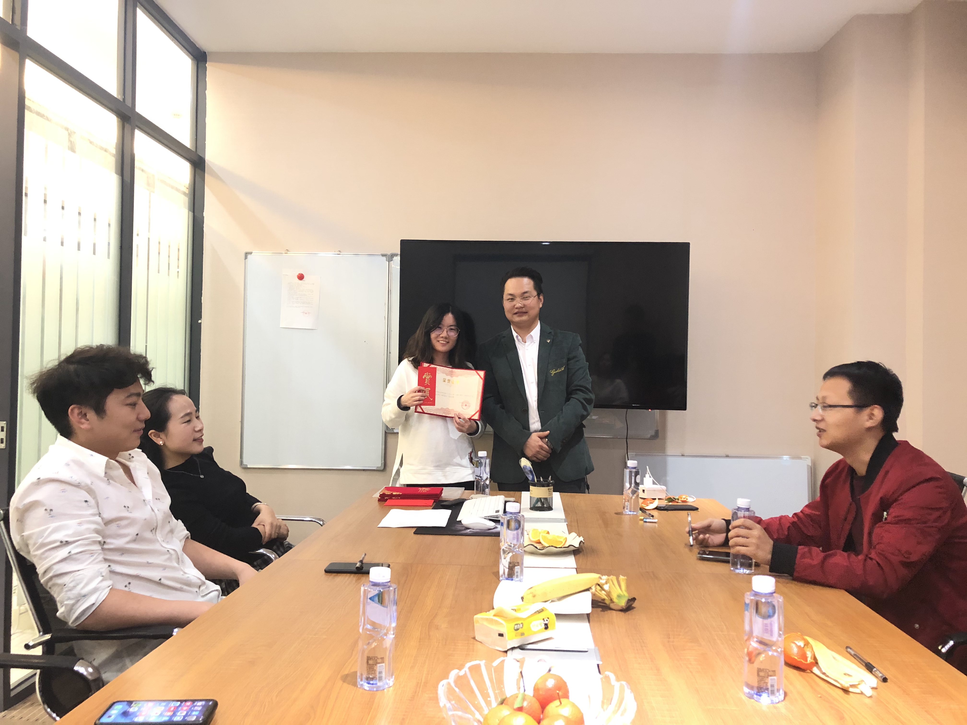 演讲结束,老板为“口才达人”一、二、三等奖人员颁发证书。
